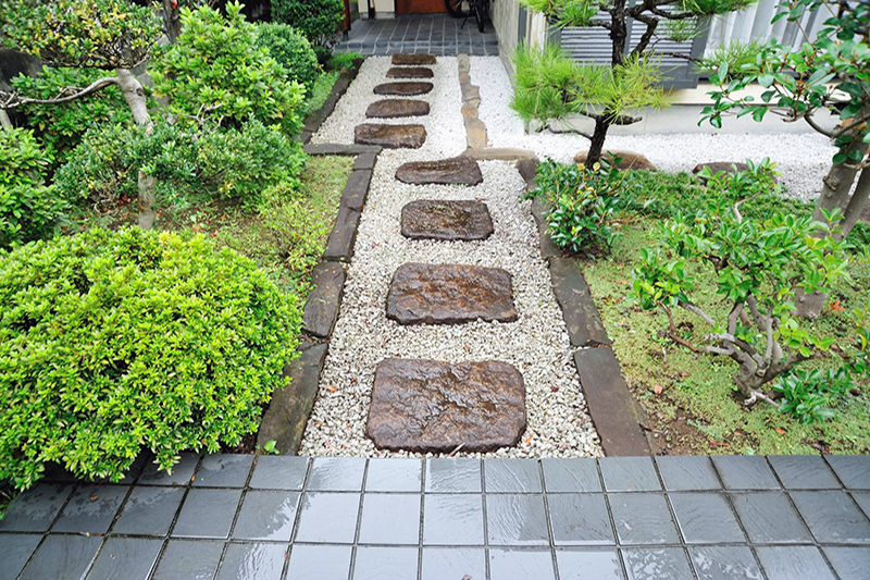 梅に鶯、松に鶴、朱塗りの橋と錦鯉の回遊式庭園など、趣のある和風庭園をお造りいたします。枯山水・石庭・坪庭・茶庭・池庭・滝庭・雑木の庭、石積みや通路など、どんなことでもご相談ください。